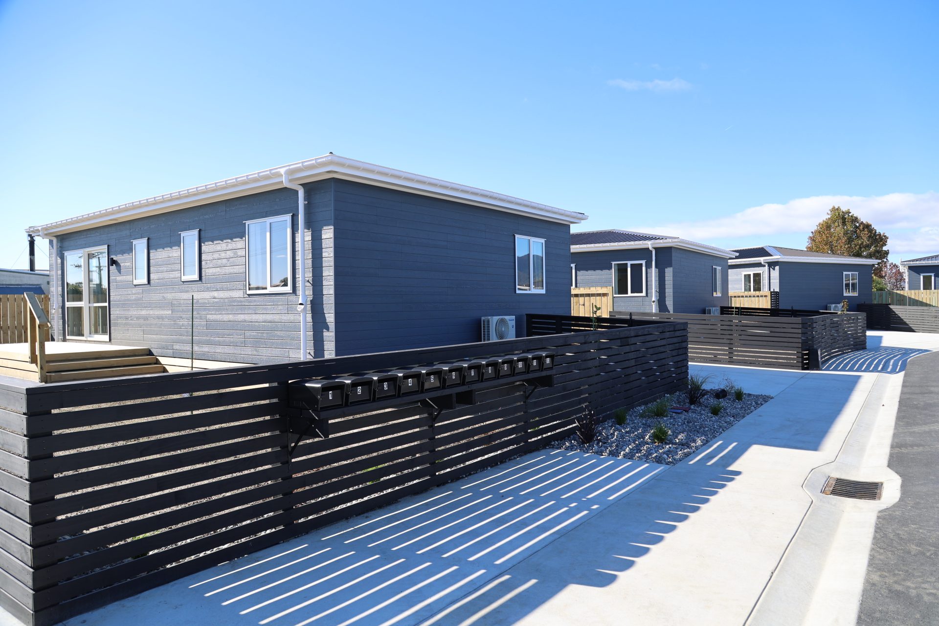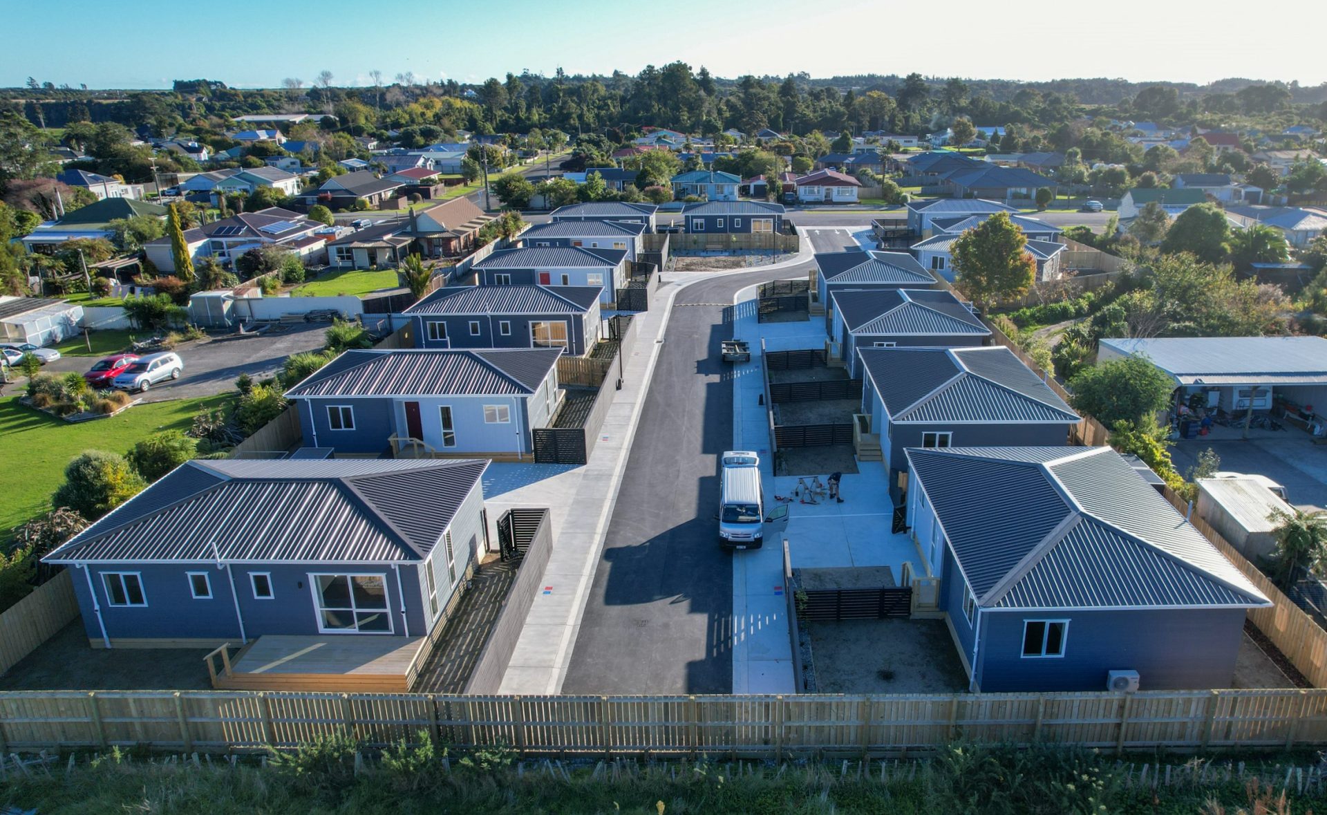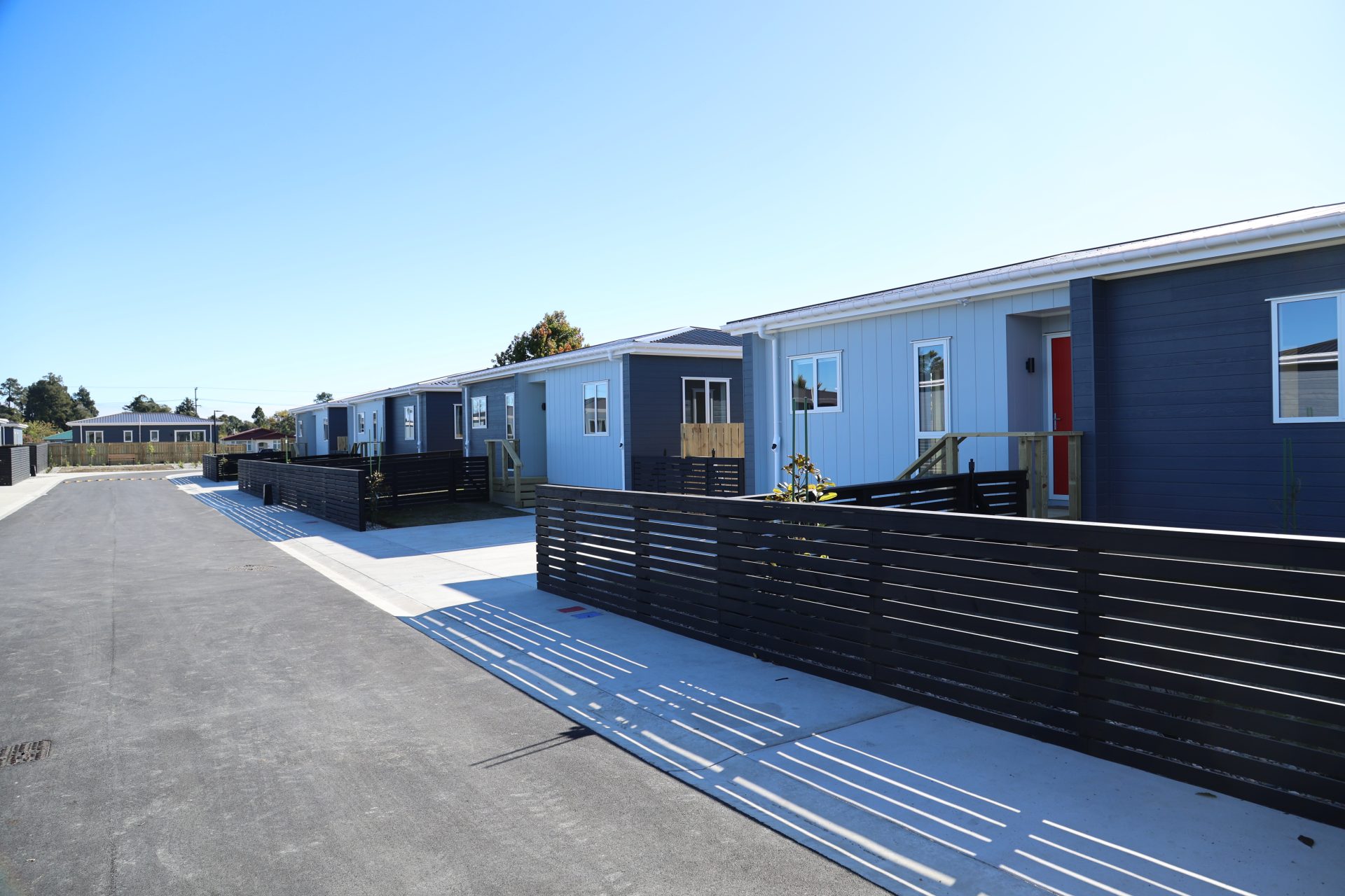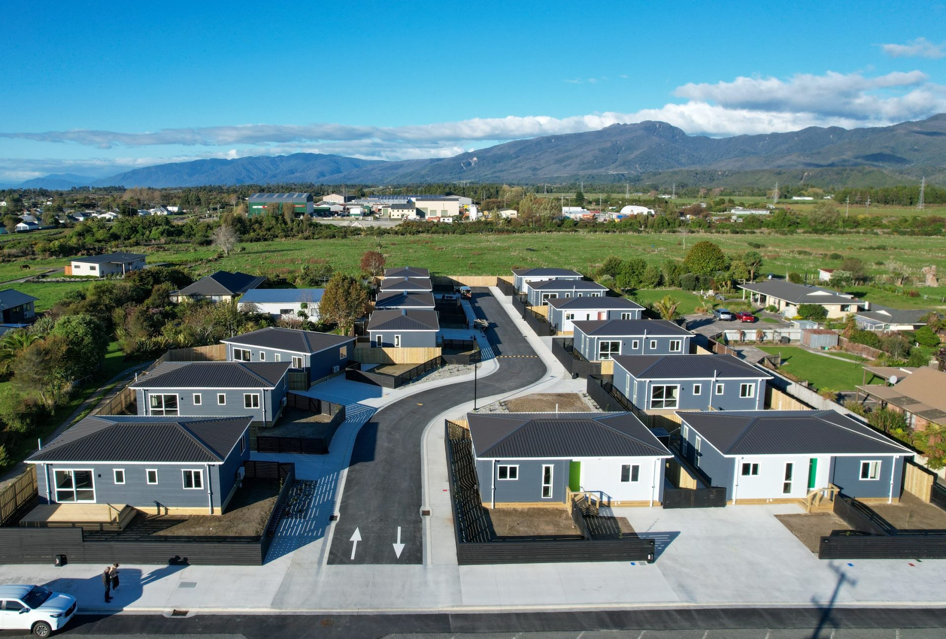 A new 14 lot subdivision is completed in Westport for Redwood Group! These warm, dry, healthy 2 bedroom homes are ready for the people of Buller to move into. All homes were constructed offsite and delivered to site fully finished inside and out. Decks, steps, fences and ground finishing works were completed on site.