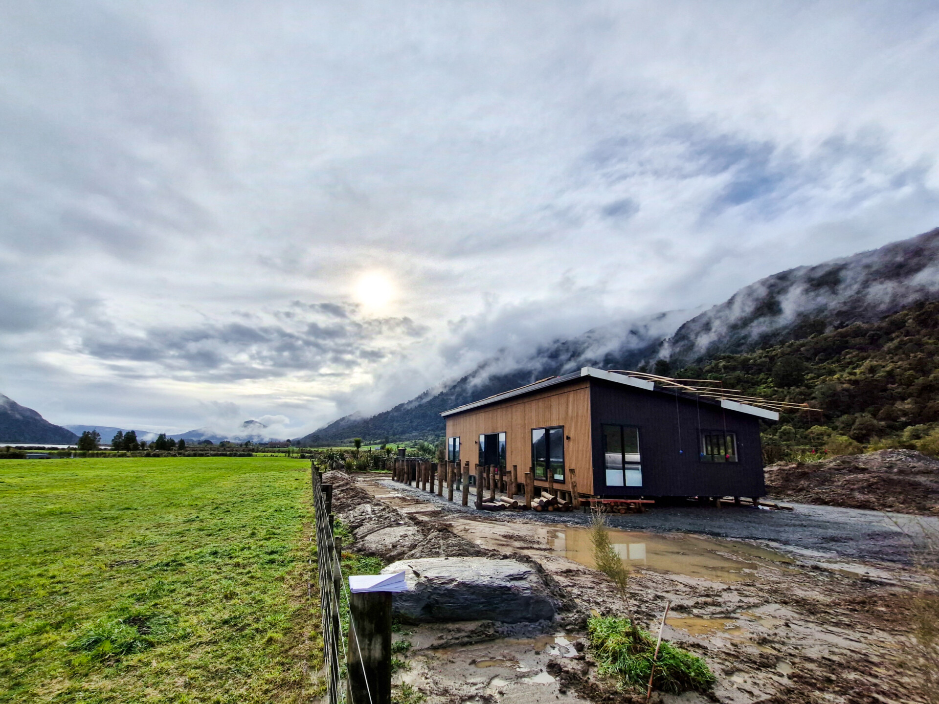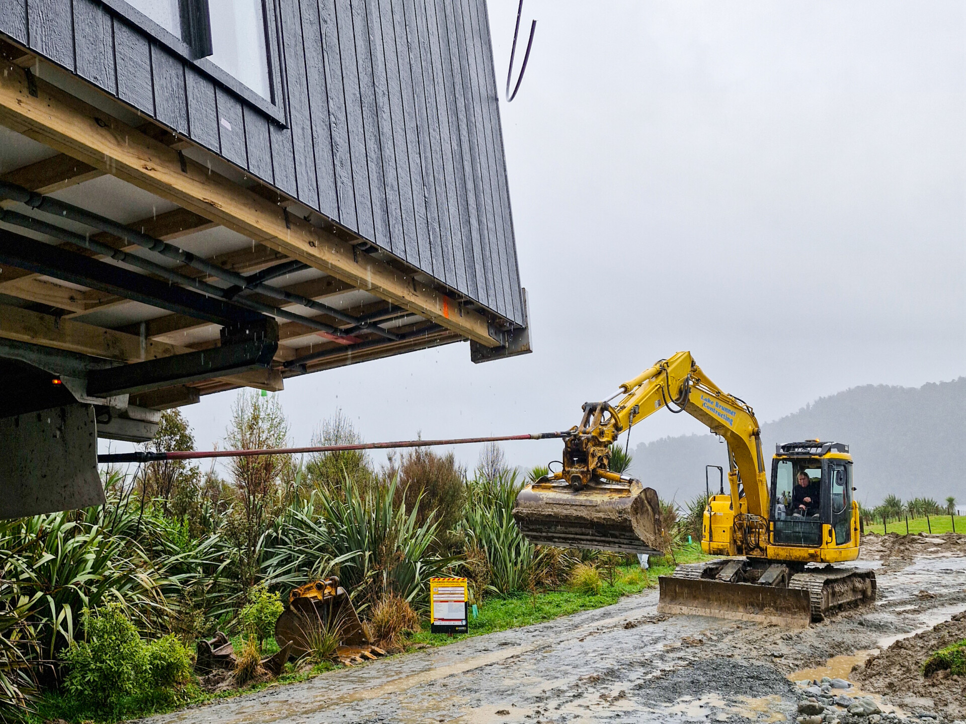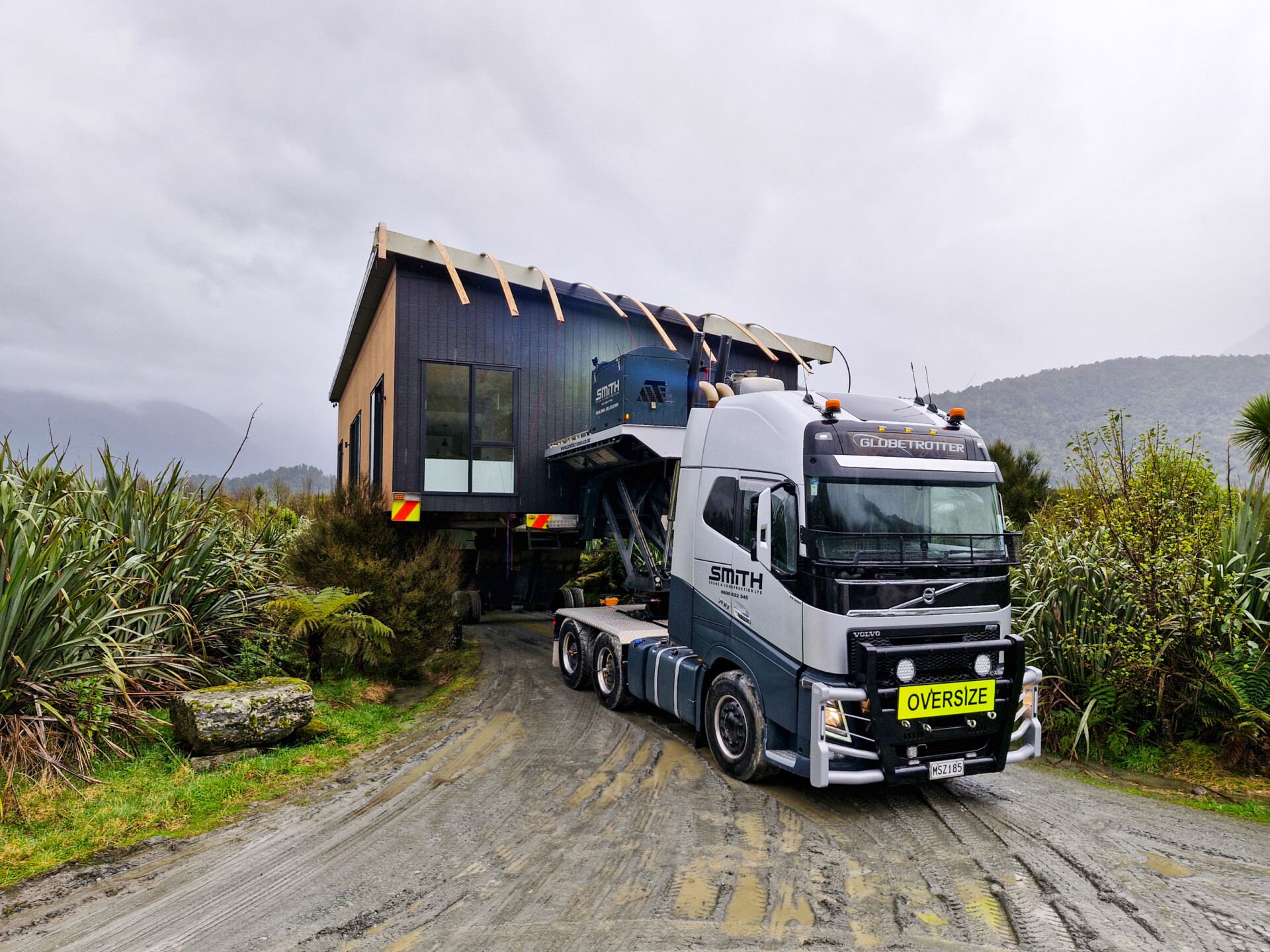 Braving the rain, this brand new 3 Bedroom Home headed up the coast road to its beautiful site at Lake Brunner!