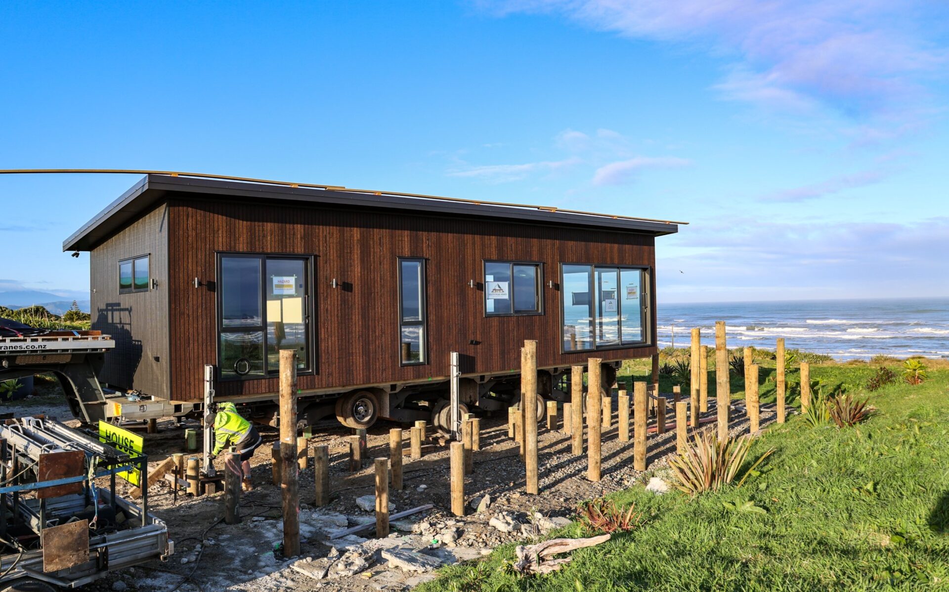 Heres a popular 1 bedroom Kendall home being delivered by the seaside on the wild West Coast. This small but stylish home has some cool colours happening inside, plus its big corner sliding doors & large deck areas will ensure it captures the 180 degree view of the Tasman Sea! More pics to follow soon once the siteworks are completed.