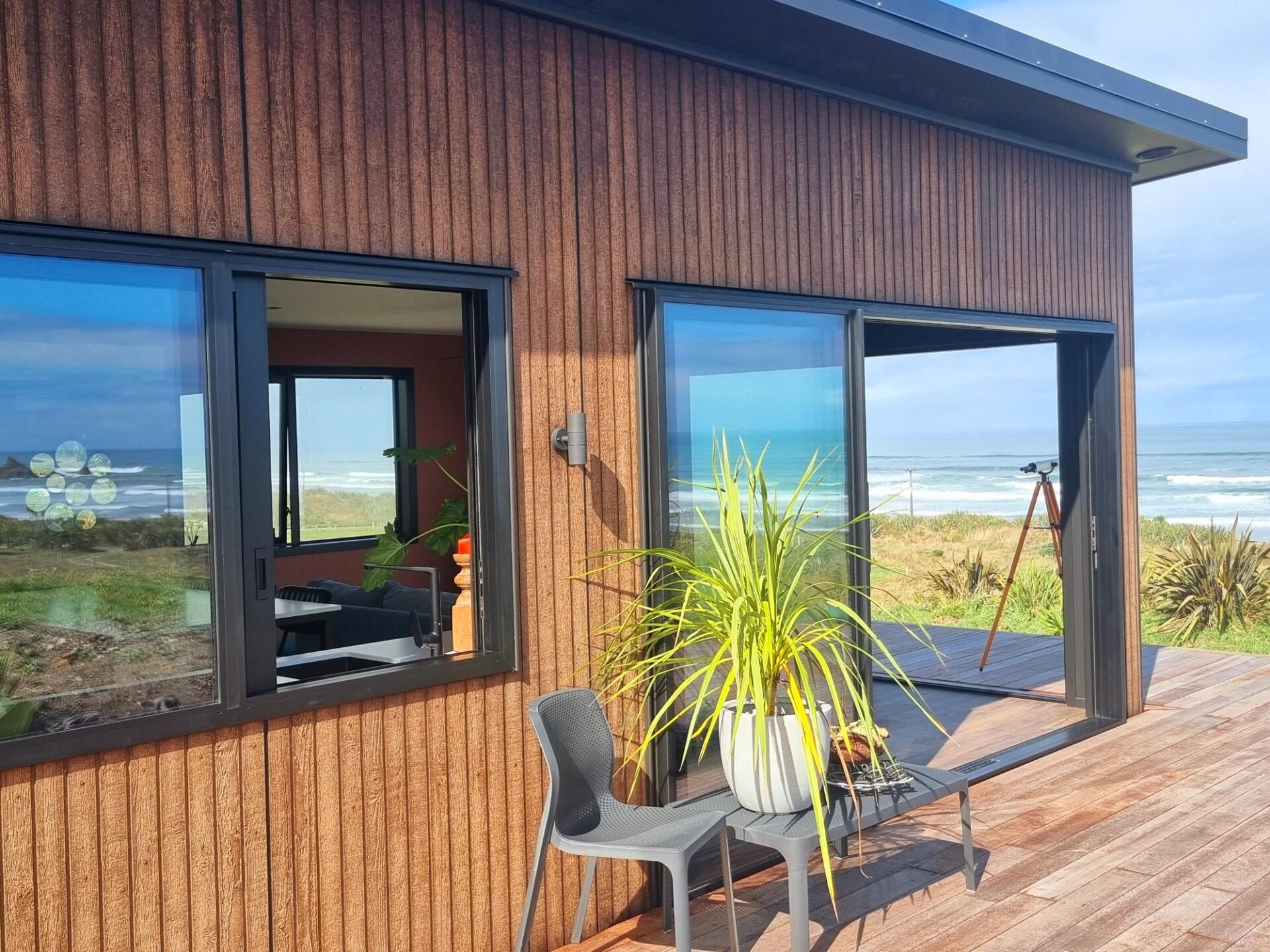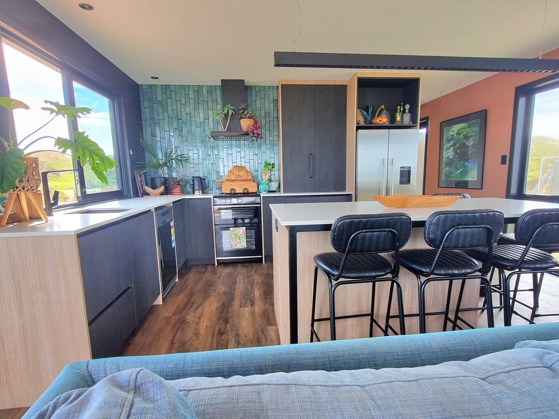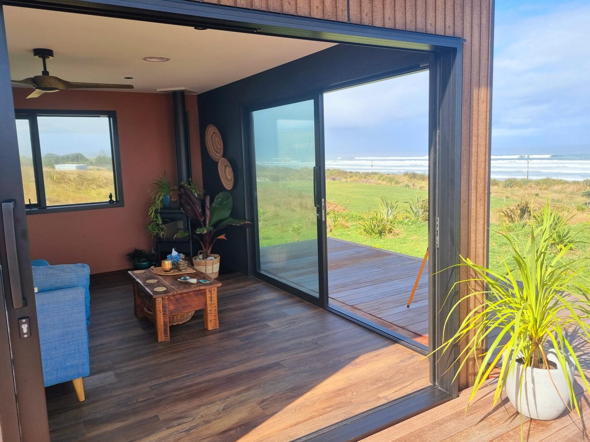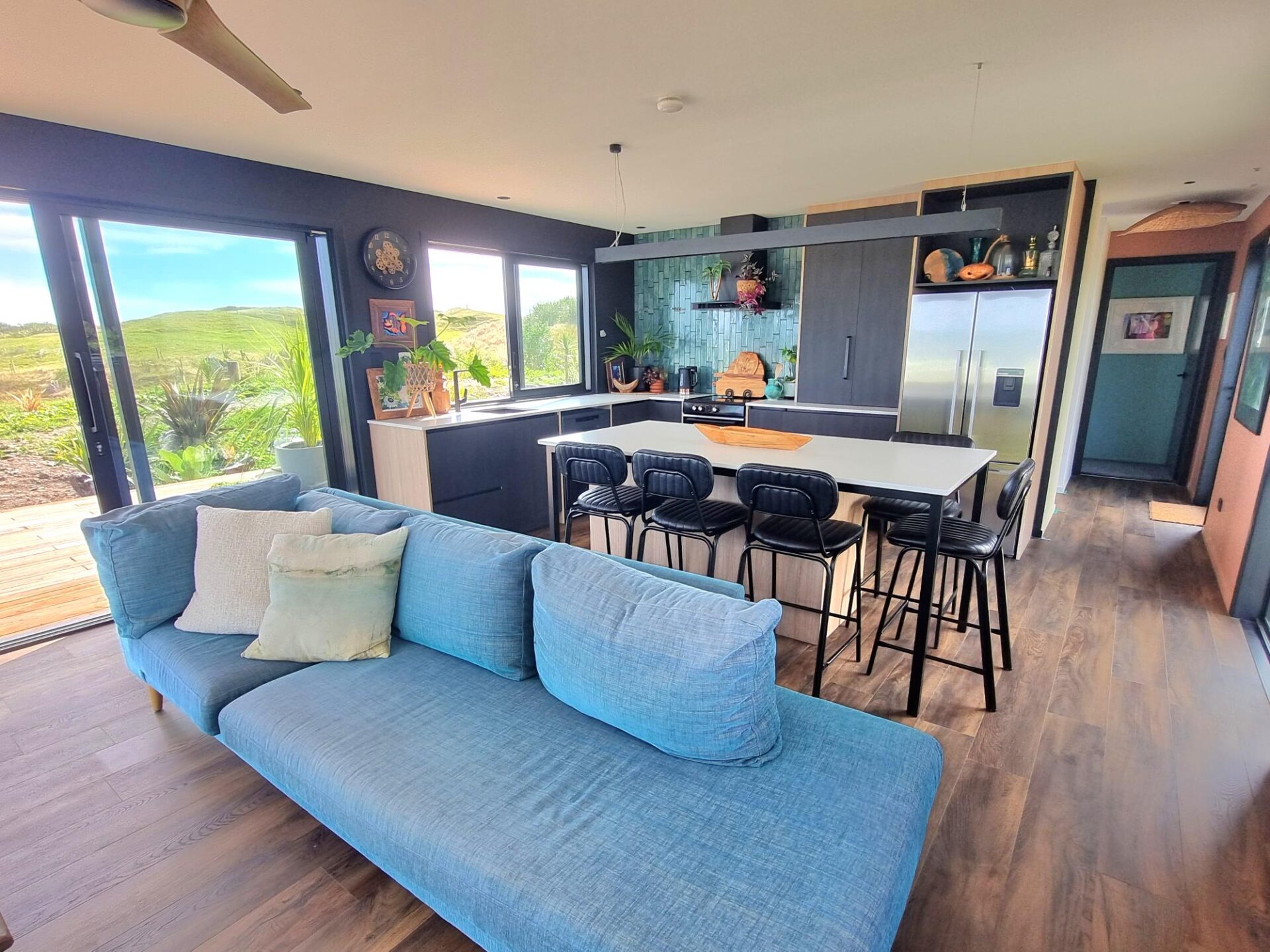 Here’s some pics of a 65sqm, 1 bedroom Kendall home that looks amazing with lots of upgrades! Sited next to a West Coast beach, surrounded by rolling farmland with 180 degree views of the Tasman Sea, this is a real slice of sunset paradise. Imagine your granny flat, airbnb, holiday home or retirement home looking like this?