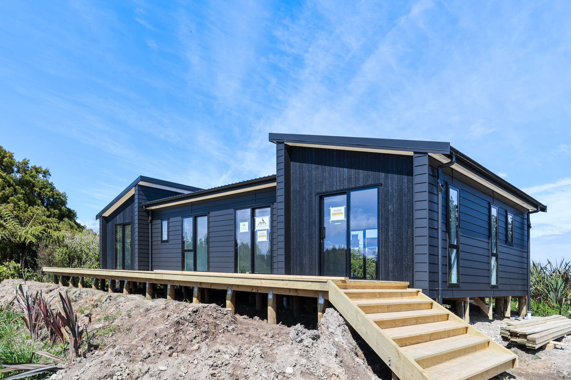 This is our 3 bedroom Oakden design featuring a stunning 3-way mono roofline, which is only available in the Westport region as it can’t be transported elsewhere due to its unique shape.