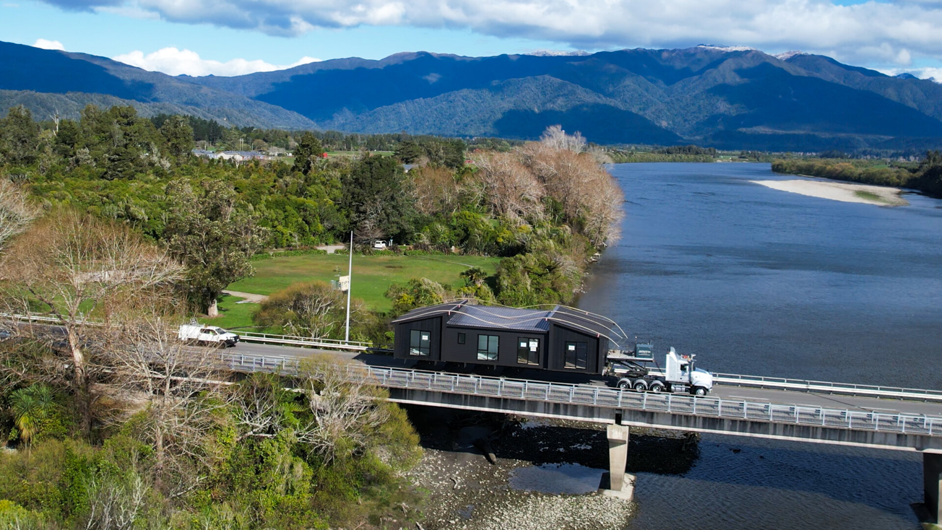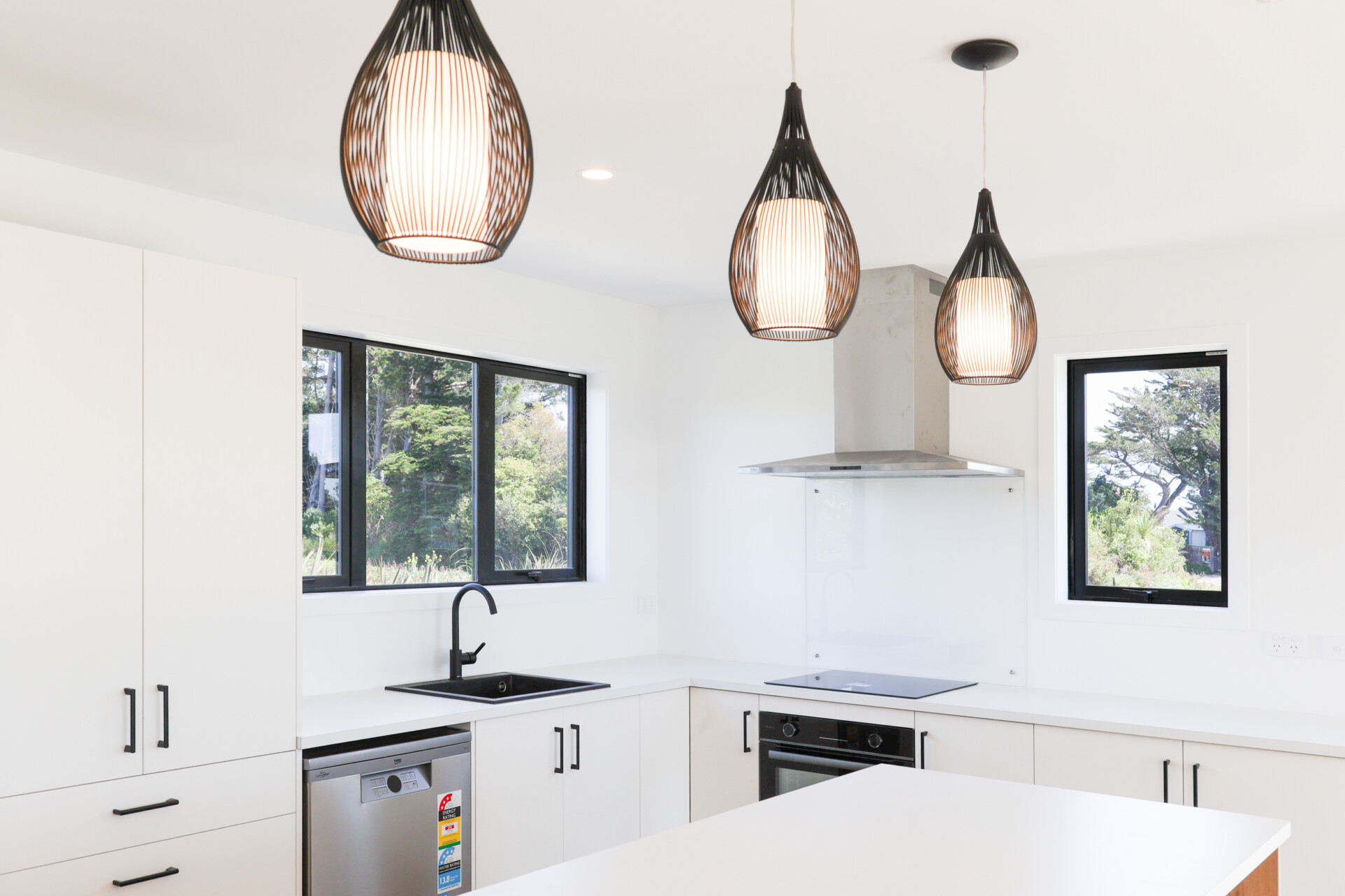 This black beauty with its bold black cladding & charred wood feature is the first house on Limestone Road at Cape Foulwind!