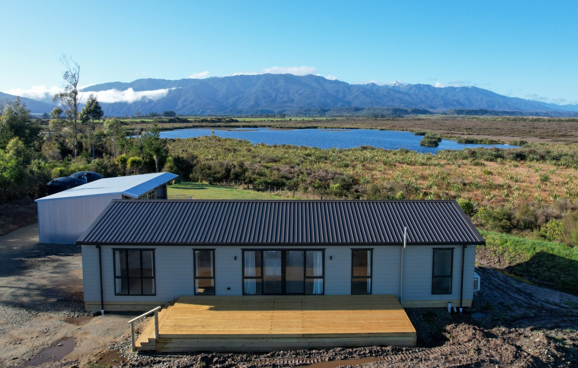 Perched above Gillows Dam lake in Westport with epic views of the Paparoa Ranges, this stunning 3-bedroom home is in its in its happy place, with Weathertex primelock cladding & contrasting cedar on the end. This house design has it all with a big open plan living area, large walk-in wardrobe, private ensuite, family sized laundry, a second bathroom & 2 decks out each side. Imagine sipping coffee on this deck, soaking in those views.