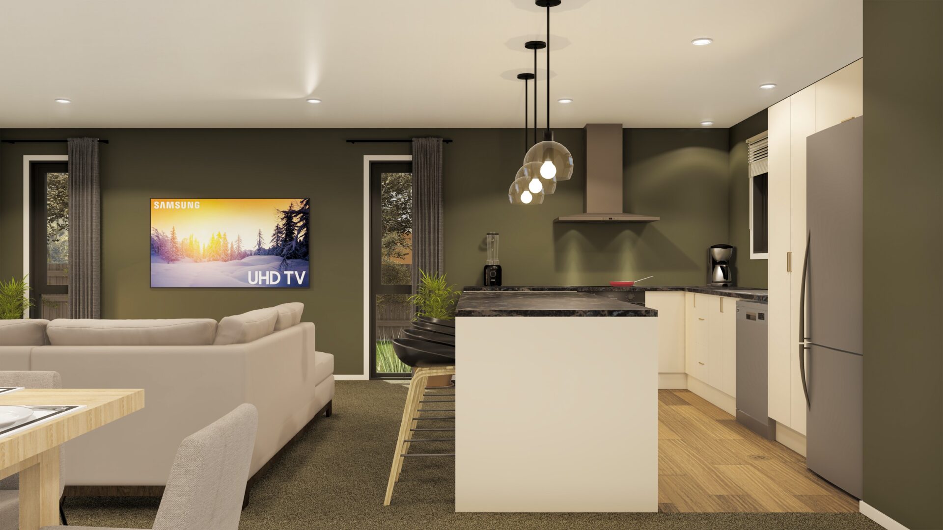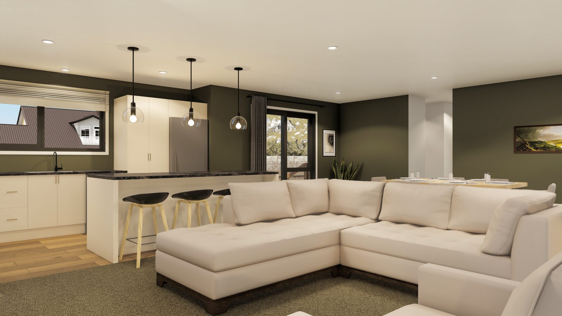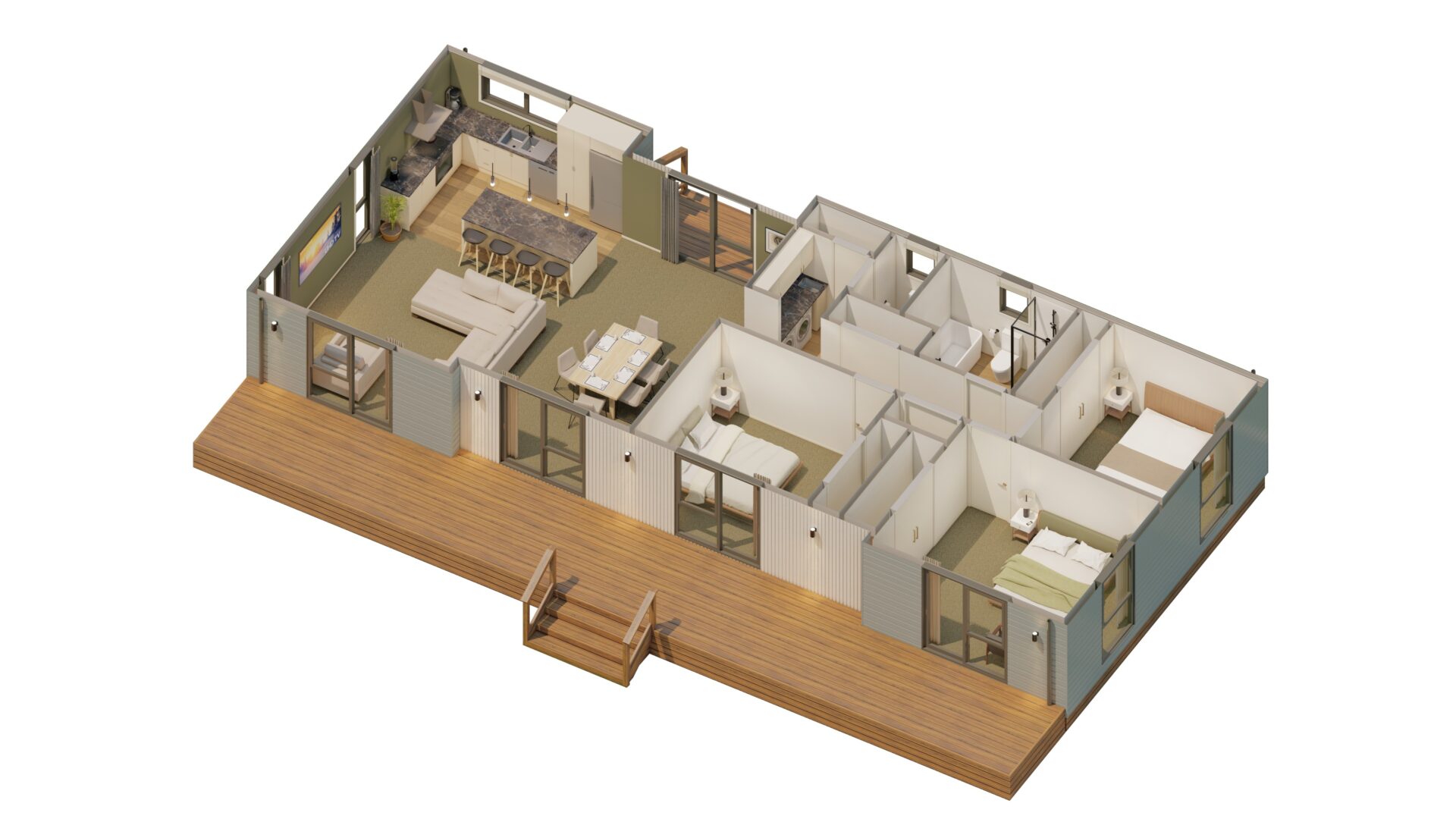 A modern looking home with open plan living and good inside outside flow. Big sliding doors make this perfect for entertaining on a large deck or lazing in the lounge and enjoying the view. With its large bedrooms and a big bathroom there’s plenty of room for the family.