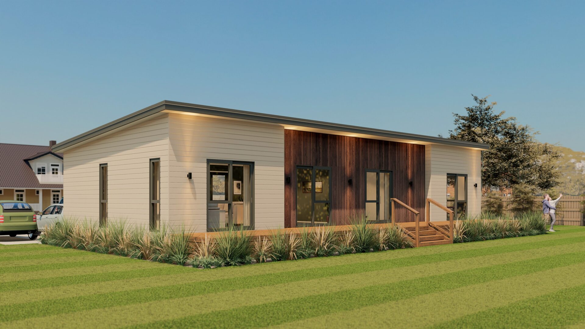 Price is for the house only ex yard, based on our standard plan & specifications & includes GST. Plus all site related costs & subject to a PIM report, engineers penetrometer test, soil & liquefaction reports, zoning & local bylaw requirements, site & resource consents, wastewater & septic designs, water tanks & pumps, site surveying, site prep for truck access, piling, decks, steps, baseboards, transport costs, service connections and any other associated compliance costs as required.