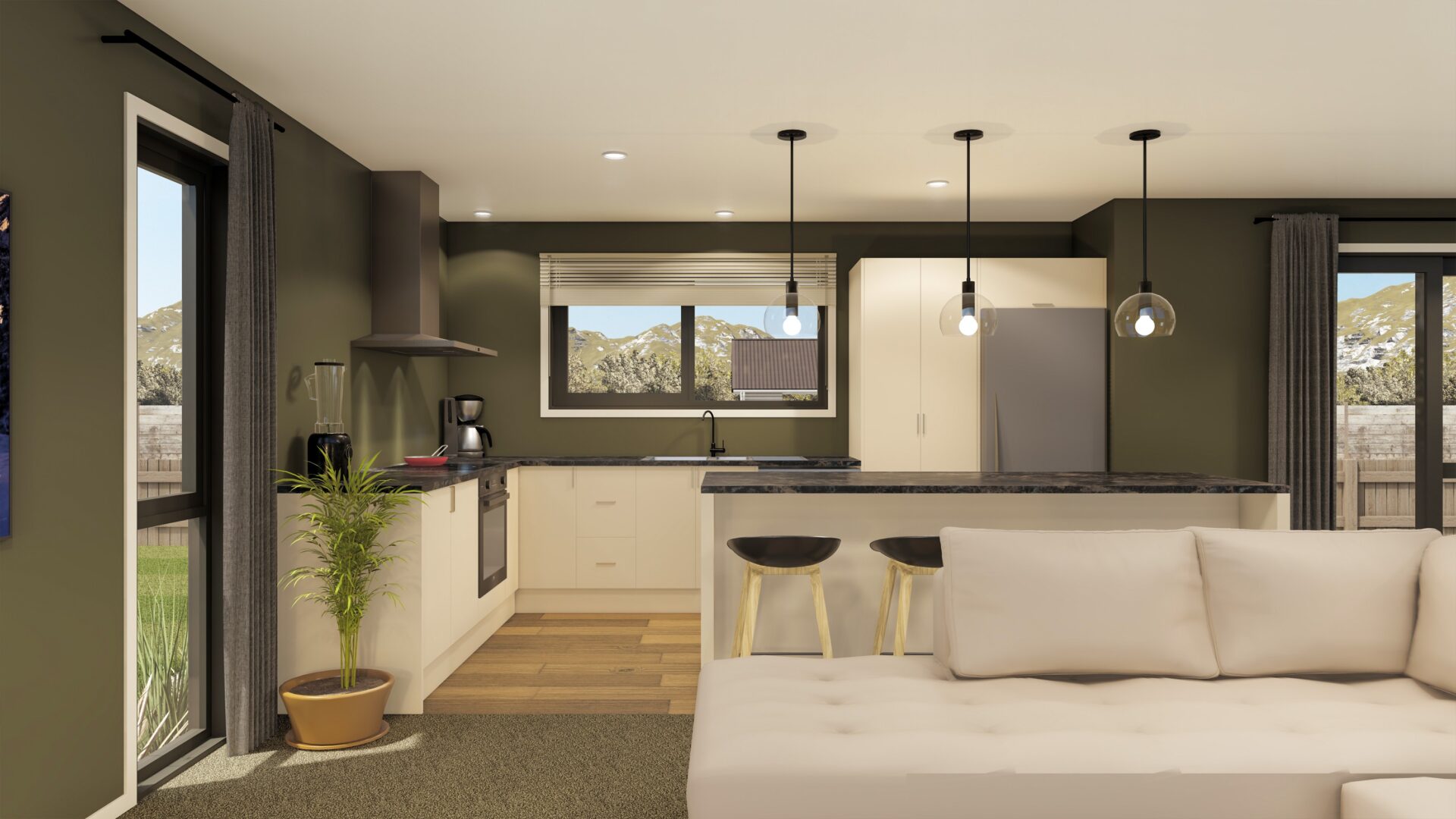 Images are artist impressions only & the landscaping is not included. This plan is available as a mono, gable or hip rooflines. We can add or remove wing walls & adjust the cladding to suit your style. Plans & pricing are subject to change at any time.