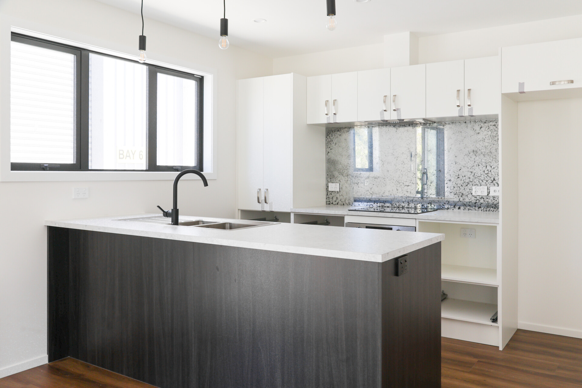 This is our 70m2 Sefton home with customized touches like the mirror splashback and bold yellow wing walls, giving it a personality all of its own.
