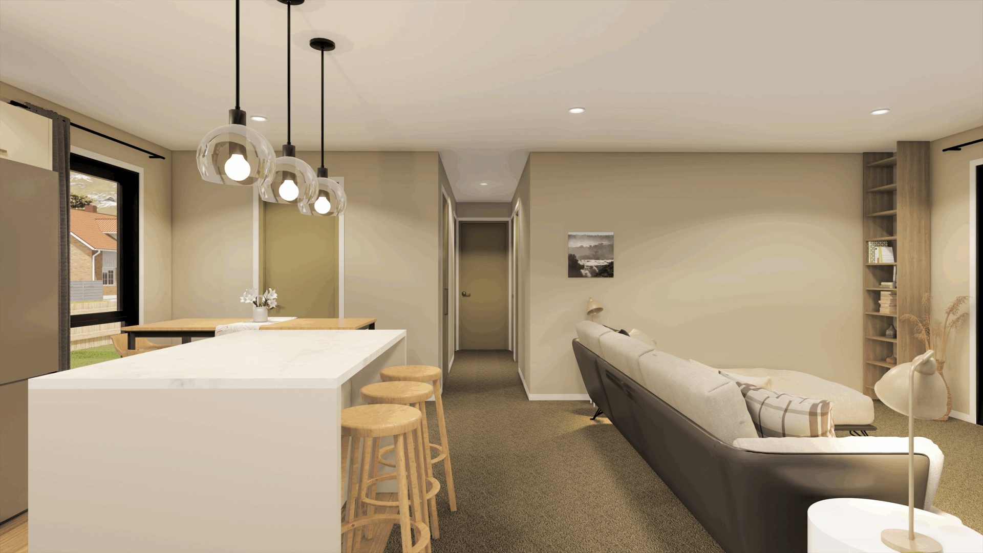 Images are artist impressions only & the landscaping is not included. This plan is available as a mono, gable or hip rooflines. We can add or remove wing walls & adjust the cladding to suit your style. Plans & pricing are subject to change at any time.